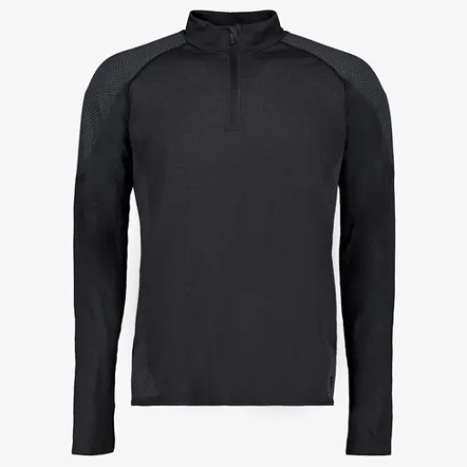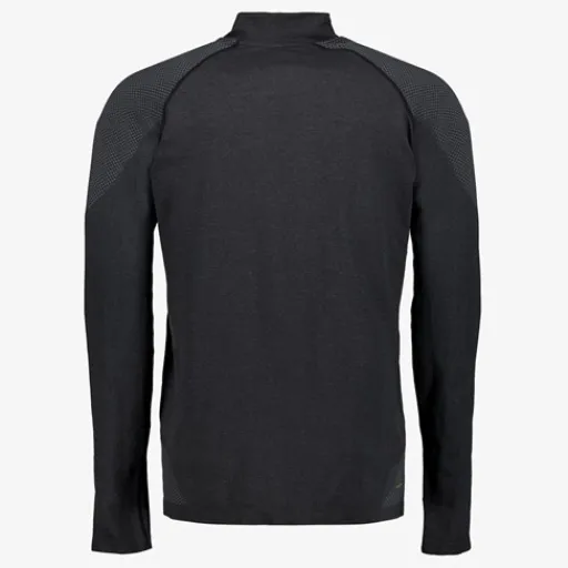 Grijs, naadloos sportshirt voor heren. Voorzien van lange mouwen, een hoge kraag en een ritssluiting met kinbeschermer. De sport pully is vervaardigd van sneldrogend en naadloos materiaal. Daarnaast zit het sportshirt lekker comfortabel zodat jij zorgeloos kunt trainen. Gemaakt van 71% polyester, 56% nylon en 3% elastaan.