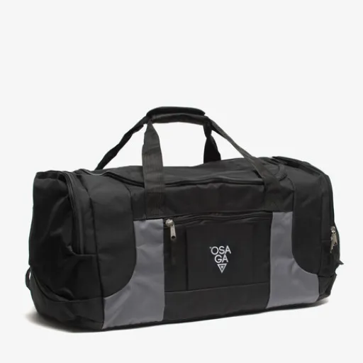 Zwart-grijze sporttas van Osaga. Deze tas heeft een groot hoofdvak, twee zijvakken en een voorvak aan de voorkant. De tas is voorzien van grijze details en een merklogo op het buitenwerk. Afmetingen: 52 x 29 x 28 cm. Inhoud: 41 liter. Gemaakt van polyester.