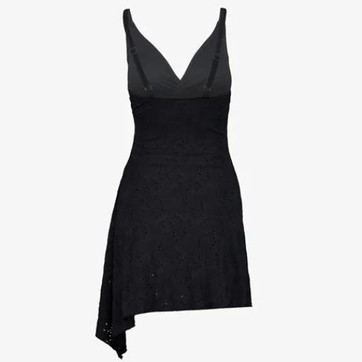Zwarte badpakjurk van Osaga voor dames. Voorzien van verstelbare schouderbandjes en voorgevormde cups. De zwemjurk heeft plooien aan de voorzijde voor een flatterend effect. Deze voorgevormde badpakjurk heeft een bovenlaag met broderie in de stof. Gemaakt van 88% polyester en 12% elastaan.