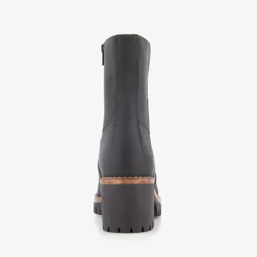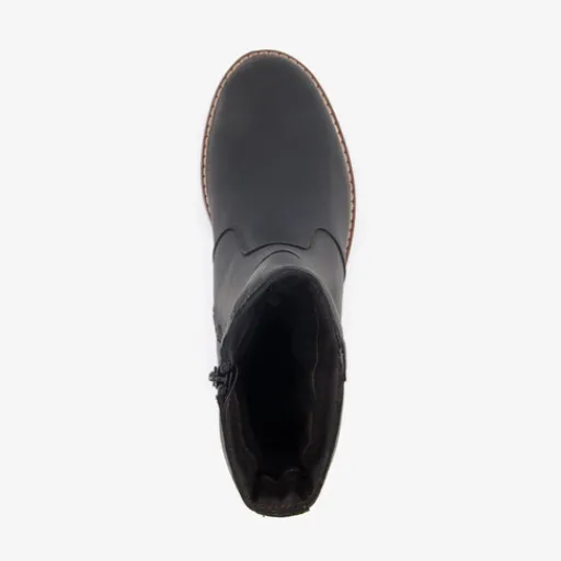 Zwarte boots voor dames van Output. Het buiten- en binnenwerk zijn gemaakt van leer en de buitenzool met profiel van rubber. Voorzien van een ritssluiting aan de binnenzijde, een zachte binnenvoering en een comfortabele binnenzool van textiel. Deze stoere dames boots hebben een stevige blokhak van circa 4 cm en een schachthoogte van 17 cm. Binnenzool is niet uitneembaar.