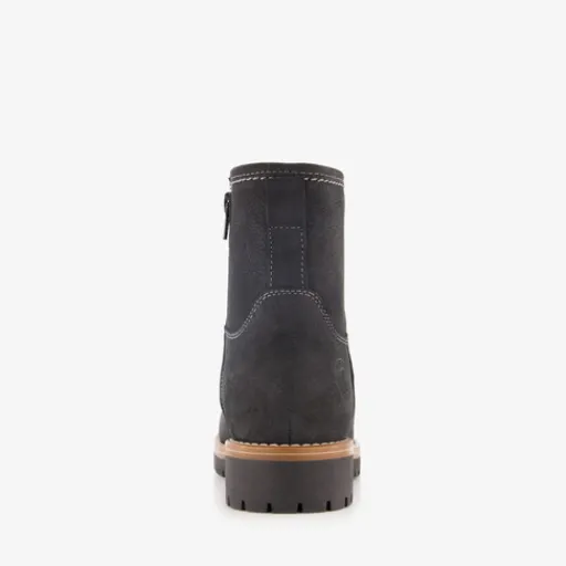 Zwarte boots voor dames van Output. Het buiten- en binnenwerk zijn van leer gemaakt en de stevige zool met profiel is van rubber. Voorzien van een ritssluiting aan de binnenzijde, een aantreklusje aan de achterkant en een comfortabele binnenzool van textiel. De enkellaarzen zijn gevoerd en hebben een blokhak van 3 cm. De schachthoogte is 14 cm. De binnenzool is niet uitneembaar.