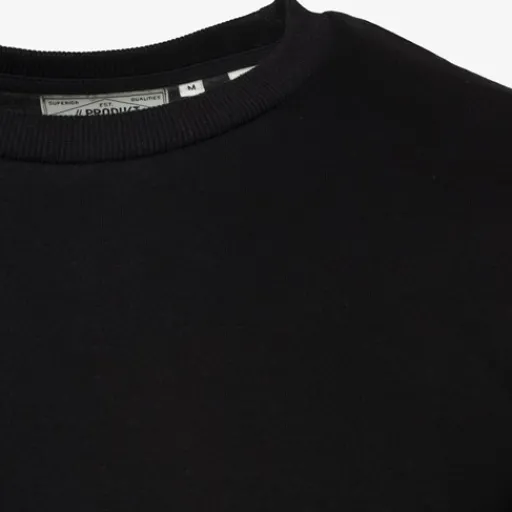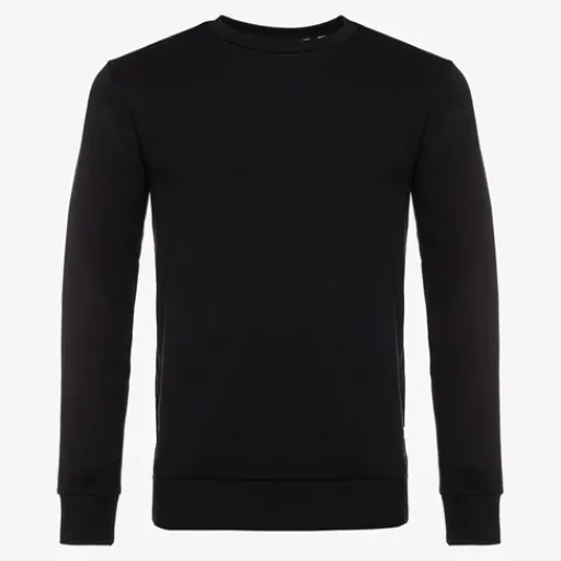 Zwarte sweater voor heren uit de Produkt collectie. Voorzien van lange mouwen en een hoge crewneck met geribde details. De sweater heeft elastische boorden. Dit artikel is gemaakt van 70% biologisch katoen en 30% polyester.