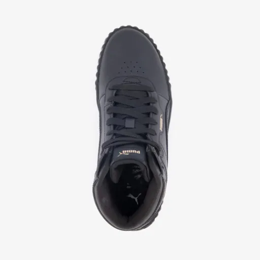 Hoge, zwarte Puma Carina Street Mid sneakers voor dames. Het buitenwerk is gemaakt van imitatieleer, het binnenwerk van textiel en de stevige zool met profiel is van rubber. Voorzien van een vetersluiting en een comfortabele binnenzool van textiel. Deze is uitneembaar zodat je eventueel je eigen zolen in de schoenen kan dragen.