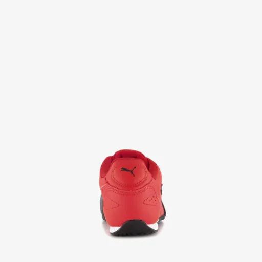 Rood-zwarte Puma Catch AC PS sneakers voor kinderen. Het buitenwerk is gemaakt van imitatieleer, het binnenwerk van textiel en de profielzool is van rubber. Voorzien van een vetersluiting en een comfortabele binnenzool van textiel. Deze is uitneembaar. De sneakers hebben zwarte en witte details en zwarte Puma Formstrips op de zijpanden.