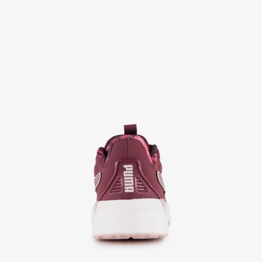 Paarse Puma Disperse XT 4 sportschoenen voor dames. Het buitenwerk is gemaakt van mesh en imitatieleer, het binnenwerk van textiel en de stevige zool met profiel is van rubber. Voorzien van een vetersluiting, een aantreklusje op de tong en een comfortabele binnenzool van textiel. Deze is uitneembaar zodat je eventueel je eigen zolen in de schoenen kan dragen. De sportschoenen hebben roze details en een witte buitenzool.