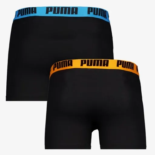 2 zwarte heren boxershorts van Puma. De boxers hebben een brede, gekleurde, elastische tailleband met merkopdrukken. Gemaakt van 95% katoen en 5% elastaan. Let op: dit product mag niet geretourneerd worden i.v.m. hygiƫne.