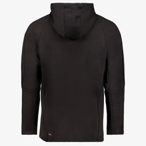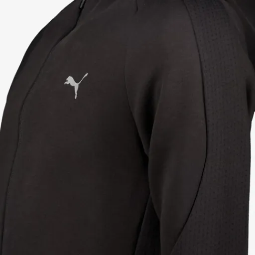 Zwarte Puma Evostripe FZ vest voor heren. Voorzien van een capuchon met aantrekkoordjes, een riutssluiting en twee steekzakken met rits aan de voorzijde. Door de snijlijnen heb je meer bewegingsvrijheid en de dryCELL prestatietechnologie voert het vocht gemakkelijk weg zodat jij je fris blijft voelen. Gemaakt van 77% katoen en 23% polyester.