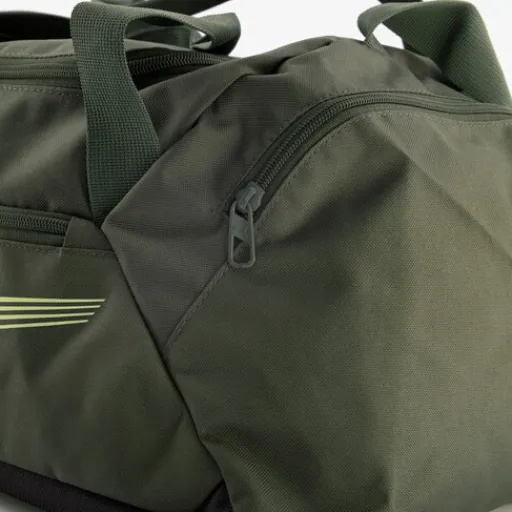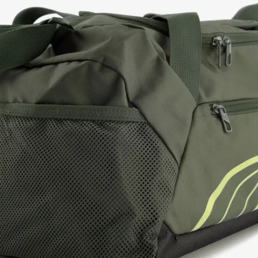 Groene Puma Fundamental Small sporttas. Voorzien van een verstelbare draagband en twee stevige draaggrepen aan de bovenzijde. De sporttas heeft een ruime hoofdvak met een dubbele ritssluiting, een mesh vakje aan de zijkant, een voorvak en een zijvak, elk met ritssluiting. De tas heeft in Afmetingen: 53 x 28 x 25 cm. Inhoud is 34 liter. Gemaakt van polyester.