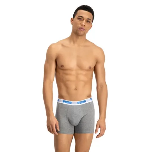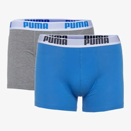 Twee heren boxershorts van Puma. De boxers in de kleur blauw en grijs hebben een brede, elastische band met logo opdruk. Gemaakt van 95% katoen en 5% elasthan.ΒΆΒΆ