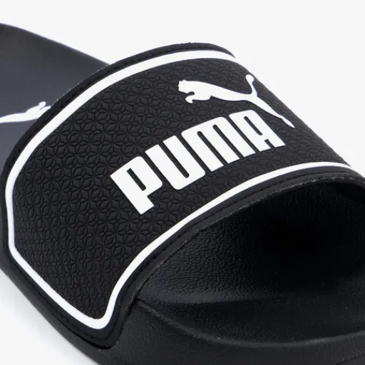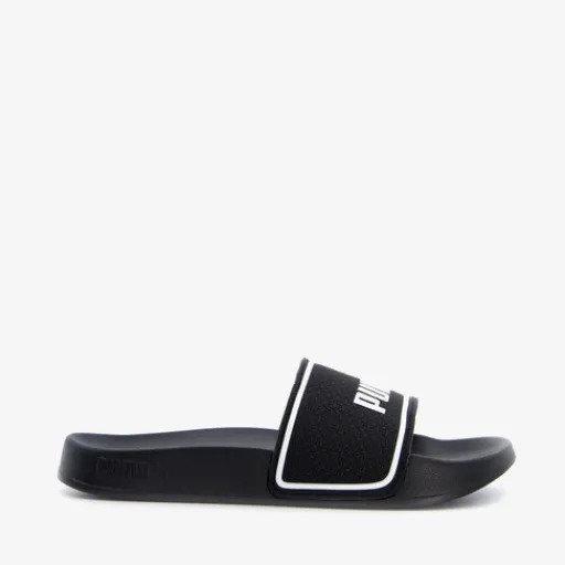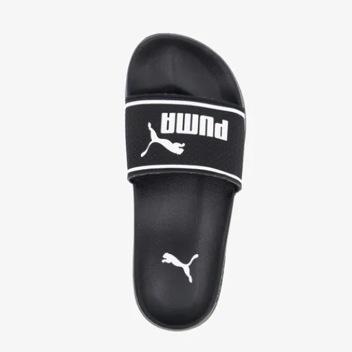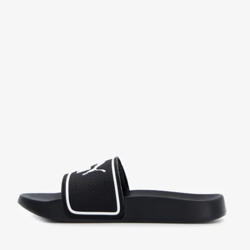 Zwarte Puma Leadcat 2.0 badslippers voor kids. De band is gemaakt van imitatieleer en de zool van rubber. De Puma slippers hebben een comfortabel, voorgevormd voetbed en teenband met merkopdrukken. De binnenzool bevat de EVA technologie wat zorgt voor een goede grip.