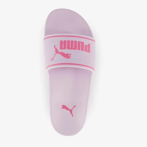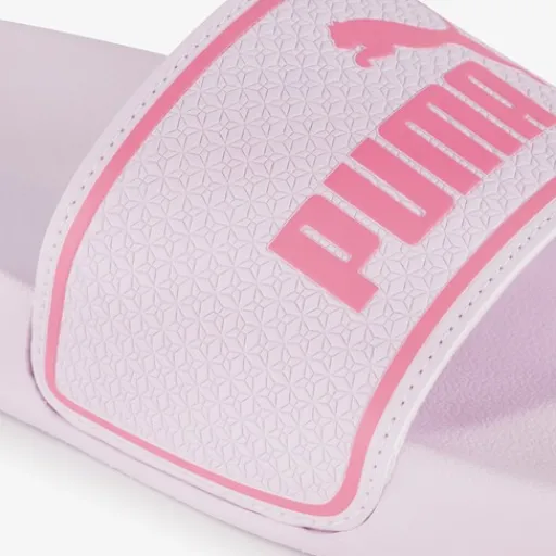 Puma Leadcat 2.0 Lilac Frost-Magic Rose badslippers voor meisjes. Voorzien van een brede voetband met merkopdrukken, een comfortabel voetbed en een rubberen zool. Deze badslippers zijn perfect voor thuis, naar het zwembad of op vakantie. Ze zijn gemaakt van slijtvast, lichtgewicht synthetisch materiaal en drogen snel op.