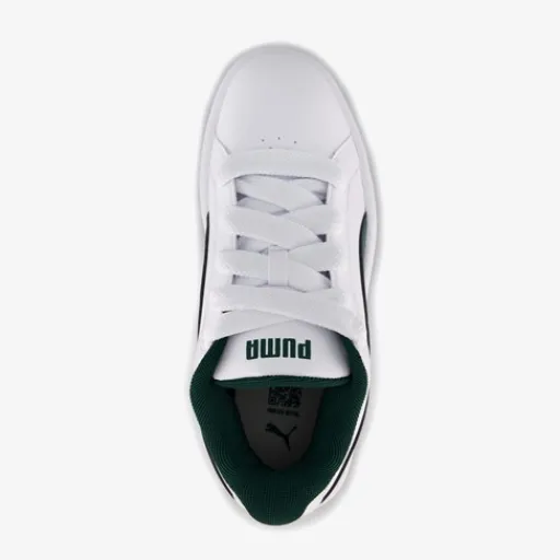 Witte Puma Park Lifestyle Easy jongens sneakers. Het buitenwerk is gemaakt van imitatieleer, het binnenwerk van textiel en de stevige zool met profiel is van rubber. Voorzien van een vetersluiting en een comfortabele binnenzool van textiel. Deze is niet uitneembaar. De Puma Park Lifestyle Easy sneakers hebben groene accenten en groene Puma Formstrips aan de zijkanten.