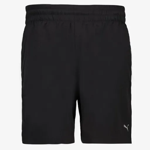 Zwart Puma Performance 7” M Woven short voor heren. Voorzien van een elastische tailleband en twee steekzakken. Op de broekspijp het het Puma logo aangebracht. Het sportbroekje is gemaakt van 100% polyester.