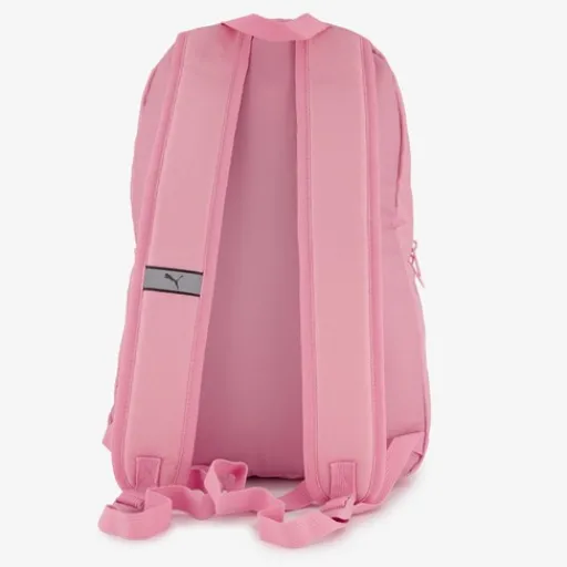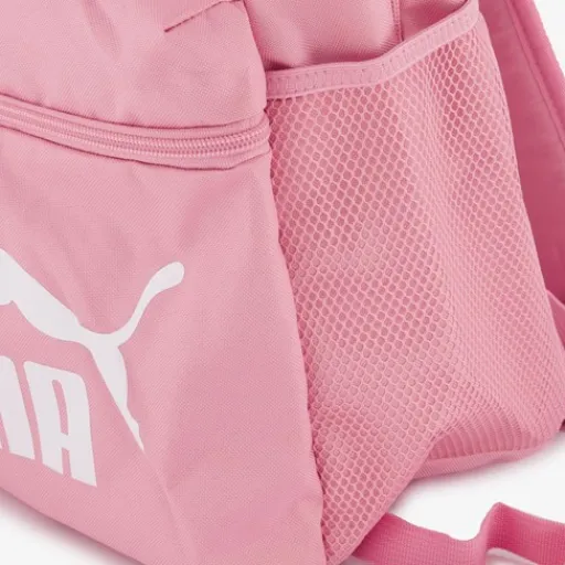 Roze Puma Phase rugzak. Voorzien van een handgreep aan de bovenzijde, een ruime hoofdvak met dubbele ritssluiting, een voorvakje met ritssluiting, een meshvakje aan de zijkant en gewatteerde, verstelbare schouderbanden. Deze handige tas is tijdloos en is gemaakt van polyester. Afmetingen: 30 x 14 x 44 cm. De inhoud is 22 liter.