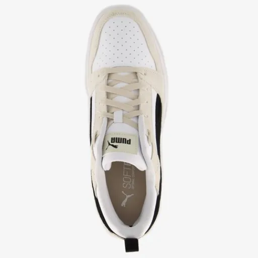 Wit met beige Puma Rebound V6 Low sneakers voor heren. Het buitenwerk is gemaakt van imitatieleer, het binnenwerk van textiel en de stevige zool met profiel is van rubber. Voorzien van een vetersluiting, hiellusjes en een comfortabele binnenzool van textiel. Deze is uitneembaar. Op het bovenwerk van de Puma Rebound V6 Low sneakers zijn perforatiegaten aangebracht en aan de zijkanten zwarte Puma Formstrips.