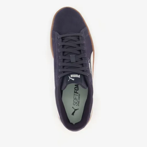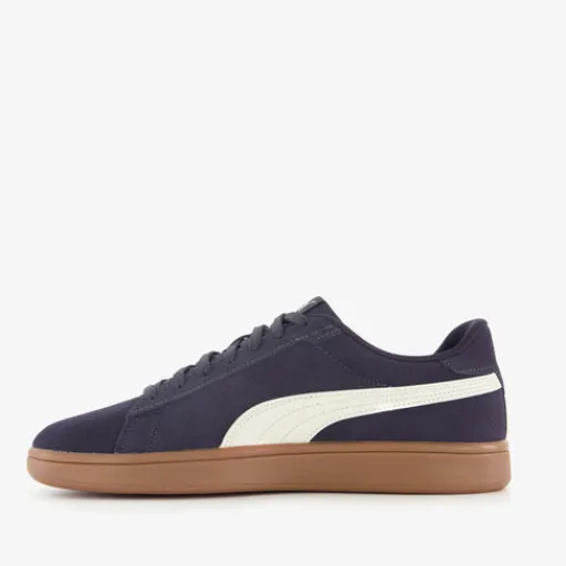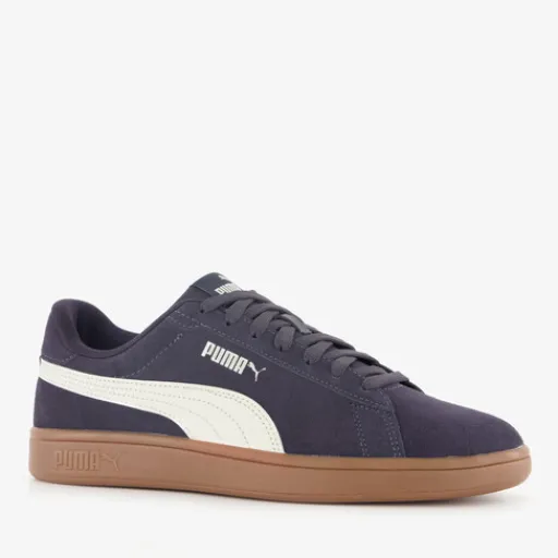 De op tennisschoenen geïnspireerde Puma Smash 3.0 heren sneakers hebben een klassiek silhouet en modern design. Het buitenwerk van deze blauwe sneakers is gemaakt van imitatieleer, het binnenwerk van textiel en de bruine buitenzool met profiel is van rubber. Voorzien van een vetersluiting voor een goede pasvorm en een uitneembaar voetbed. Deze bevat Soft Foam wat voor comfort zorgt. De sneakers worden hebben witte merkopdrukken en witte Puma Formstrips aan de zijkanten.