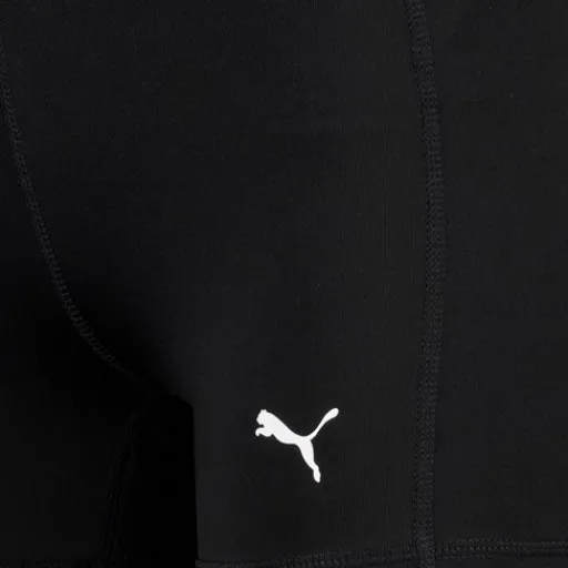 Zwart Puma Train Favorite 3 Tight dames sportshort. Voorzien van een elastische tailleband en aansluitende pasvorm. Het sportbroekje heeft een wit Puma Cat logo op het linkerbeen en is gemaakt van 89% polyester en 11% elastaan.
