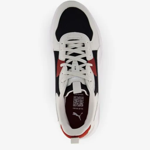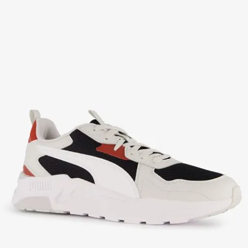 Witte Puma Trinity Lite sneakers met zwarte en rode accenten voor heren. Het bovenwerk is gemaakt van imitatieleer en mesh, het binnenwerk van textiel en de stevige profielzool van rubber. Deze mooie schoenen zijn op hardloopschoenen geïnspireerd en hebben retro-elementen om de stijl te versterken. Voorzien van een SoftFoam+ voetbed voor extra comfort en demping bij elke stap die je neemt. Binnenzool is uitneembaar.