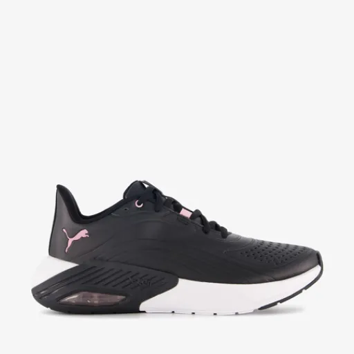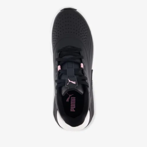 Zwarte Puma XL Nova Cat SL sneakers voor dames. Het bovenwerk is gemaakt van imitatieleer, het binnenwerk van textiel en de airzool met profiel is van rubber. Voorzien van een vetersluiting en een comfortabele binnenzool van textiel. Deze is uitneembaar. De sneakers hebben luchtcompartimenten in de zolen die demping geven en op het buitenwerk zijn roze en witte accenten aangebracht.