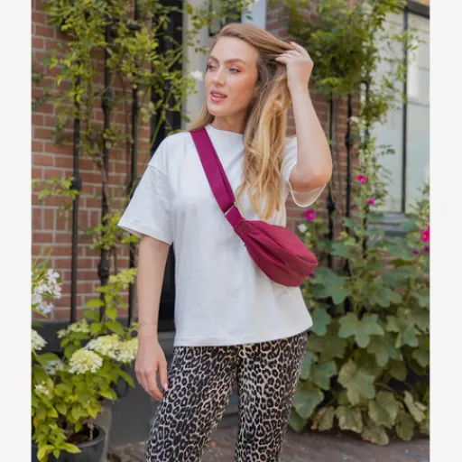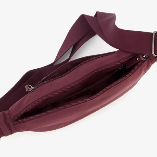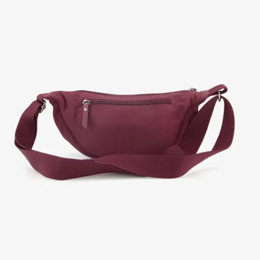 Bordeauxrode tas voor dames van Renato Lucci. Deze crossbody tas is perfect voor een festival omdat je ‘m schuin over je bovenlichaam kan dragen en naar voren kan schuiven zodat je er zicht op hebt. Daarnaast is de tas compact en heeft het voldoende ruimte voor al je festival essentials! De tas heeft een verstelbare schouderband, een hoofdvak met ritssluiting en een achtervakje met rits. Afmetingen: 32 x 6 x 11,5 cm. Gemaakt van nylon.