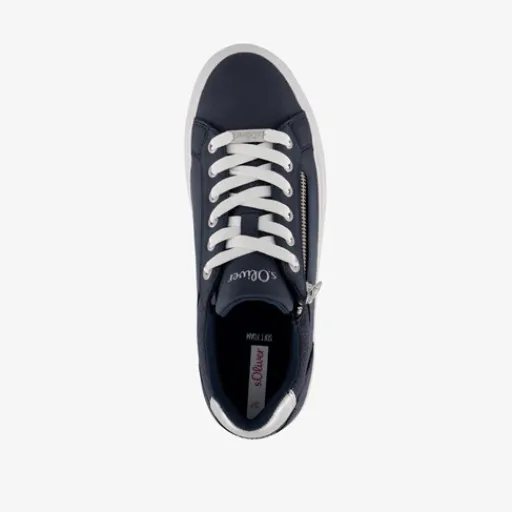 Blauwe sneakers voor dames van S.Oliver. Gemaakt van imitatieleer, een binnenwerk van imitatieleer en een rubberen zool. De sneakers hebben een rits- en vetersluiting en comfortabel Soft Foam voetbed. Deze is niet uitneembaar. Voorzien van een metallic zilver detail op de hiel.