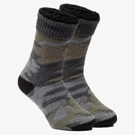 1 paar warme huissokken voor heren met camouflage print. Deze warme sokken zijn gemaakt van 75% katoen, 22% polyester en 3% elastaan. Aan de onderzijde zit antislip voor een goede grip.