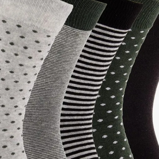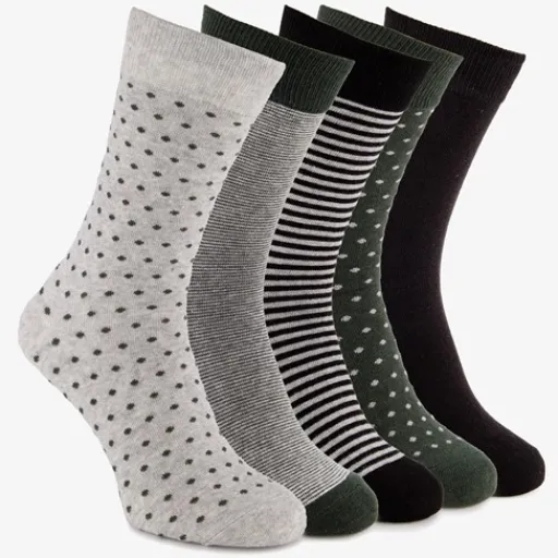 5 paar herensokken in de kleur grijs. Voorzien van verschillende printjes. De lange sokken zijn gemaakt van 75% katoen, 22% polyester en 3% elastaan. ΒΆ