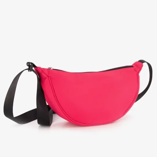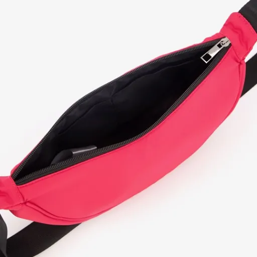 Roze crossbody tas met zwarte band voor dames. Voorzien een hoofdvak met ritssluiting en een lange, verstelbare schouderband. Afmetingen: 38 x 37 x 17 cm. Gemaakt van nylon.