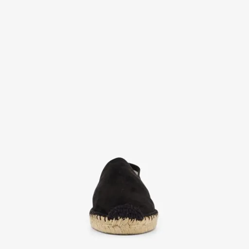 Zwarte espadrilles voor dames. Gemaakt van textiel met een binnenwerk van textiel en een buitenzool van gevlochten jute. De binnenzool is ook van jute gemaakt en is niet uitneembaar. Dit maakt de espadrilles licht, ademend en comfortbal.