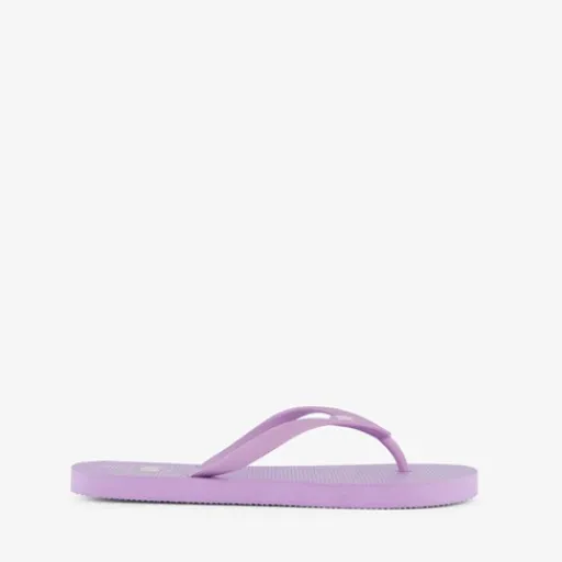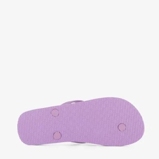 Lila teenslippers voor dames. De slippers hebben een flexibel voetbed en zijn gemaakt van rubber.