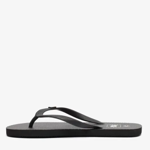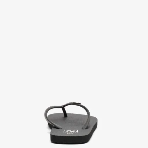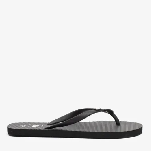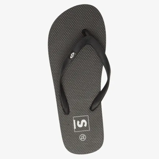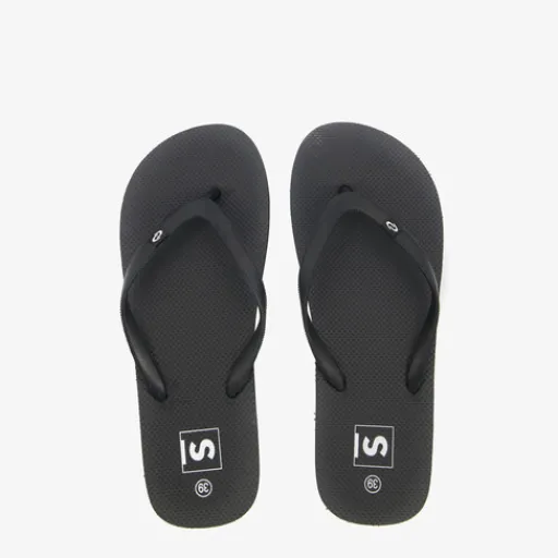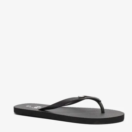 Zwarte teenslippers voor dames. De slippers hebben een flexibel voetbed en zijn gemaakt van rubber.