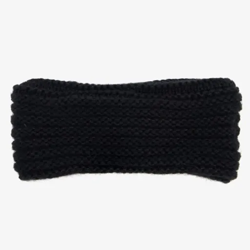 Zwarte, gebreide hoofdband voor dames. Deze warme haarband kun je over je oren heen dragen zodat deze lekker warm blijven tijdens het koude winterweer. Gemaakt van 100% acryl.