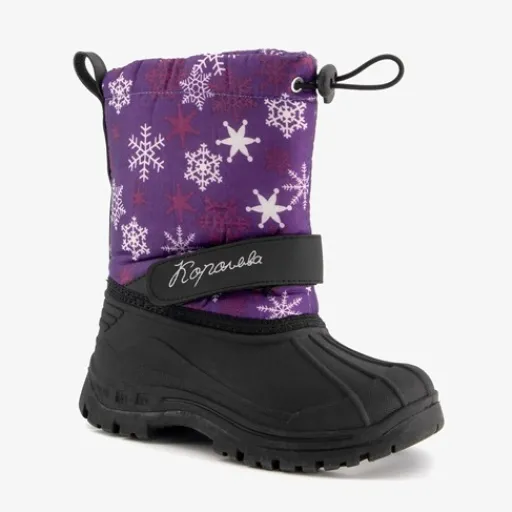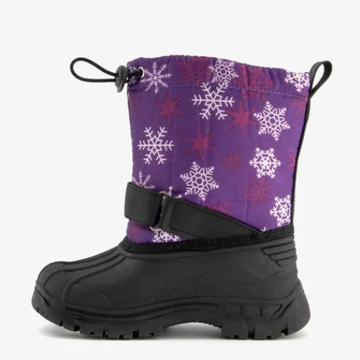 Paarse snowboots voor kids uit de Scapino collectie. De buitenkant is gemaakt van nylon. Het binnenwerk is gemaakt van teddystof en de snowboots hebben een stevige profielzool. De aansnoerkoordjes en klittenbandsluiting zorgen voor een extra stevige, aansluitende pasvorm. De snowboots hebben een leuke print van ijssterretjes op het bovenwerk. Voorzien van een warme binnenvoering van teddy stof voor warme voeten.¶¶