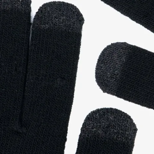 Zwarte heren handschoenen met touchscreen vingertoppen. Met deze handschoenen blijf jij lekker scrollen op je smartphone terwijl jouw handen lekker warm blijven. Gemaakt van 70% acryl, 29% polyester en 1% elastaan.