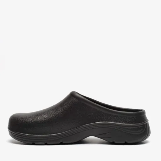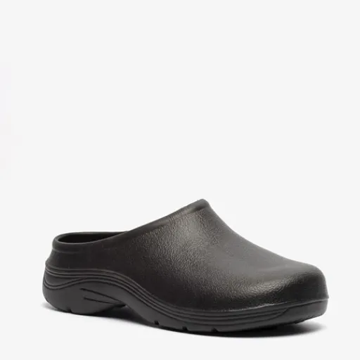 Zwarte tuinklompen voor heren. Makkelijk om even snel in te stappen tijdens het tuinieren of het legen van de brievenbus! De klompen zijn gemaakt van imitatieleer en hebben een comfortabel voetbed van textiel. De rubberen profielzool zorgt voor grip en demping.
