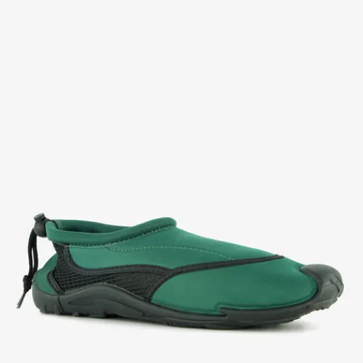 Groene water- en surfschoenen voor heren. Gemaakt van scuba (textiel), een binnenwerk van textiel en een dikke profielzool van rubber. De waterschoenen hebben een elastische instap met aansnoerkoordje aan de achterzijde voor een optimale pasvorm. Hierdoor zitten de schoenen stevig om de voeten. Vervaardigd van ademend materiaal. De waterschoenen zijn te gebruiken tijdens het zwemmen, surfen of andere water gerelateerde sporten en beschermen de voeten optimaal.