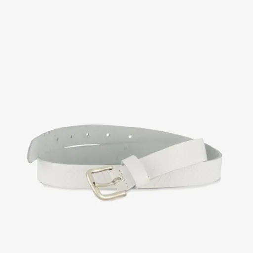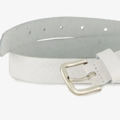 Witte riem voor dames. Gemaakt van leer met een zilverkleurige gesp en all over slangenprint.