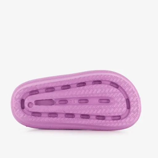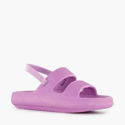 Lila sandalen voor meisjes. Gemaakt van sneldrogend, synthetisch materiaal met een rubberen loopzool. De sandalen hebben twee wreefbanden en een elastisch hielbandje. Het voetbed voelt comfortabel aan. De sandalen zijn lichtgewicht en ideaal voor bijvoorbeeld vakantie of het strand/zwembad.