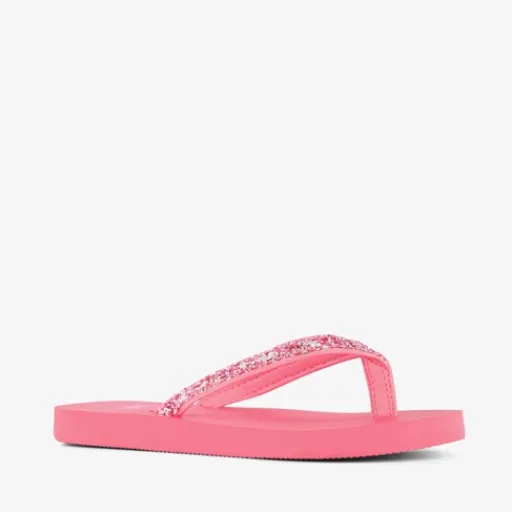 Roze teenslippers voor meisjes. Voorzien van een stevig teenbandje met glitters en een comfortabele voetbed. De teenslippers zijn gemaakt van lichtgewicht en sneldrogend materiaal.