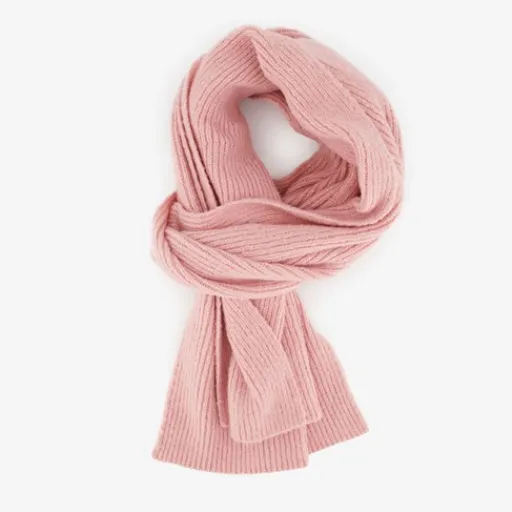 Roze sjaal voor dames met rib patroon. Gemaakt van 70% acryl, 27% viscose en 3% elastaan. De lengte van de sjaal is 230 cm en breedte is 40 cm.