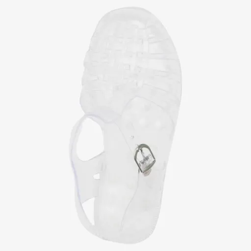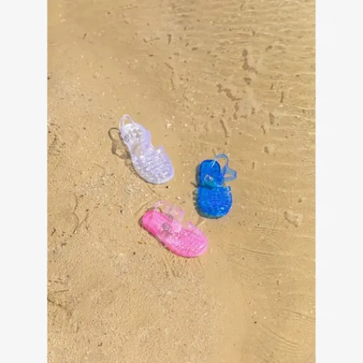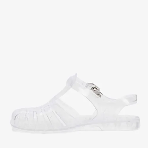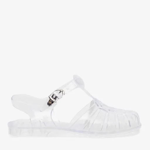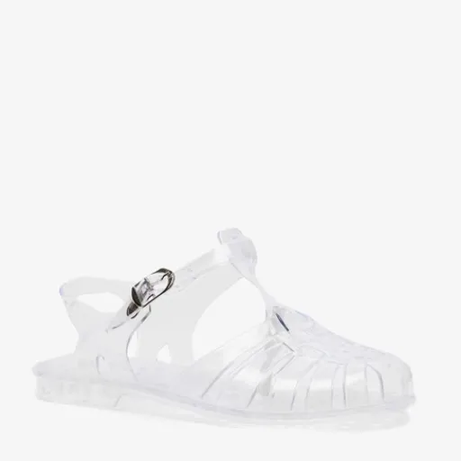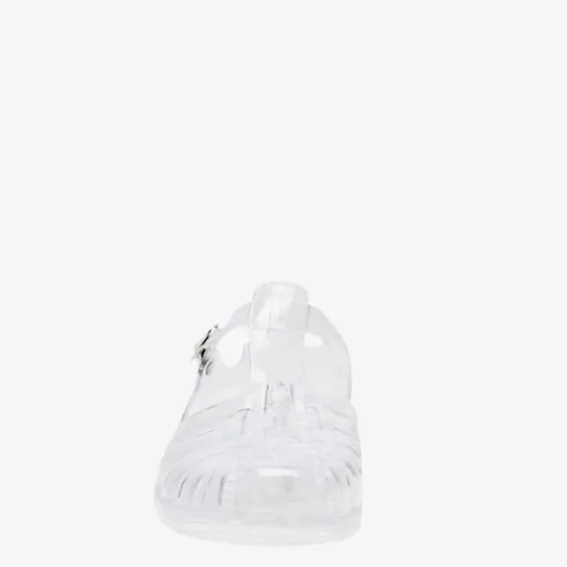 Transparante waterschoen voor dames en kinderen. De waterschoenen hebben een verstelbare gespsluiting.