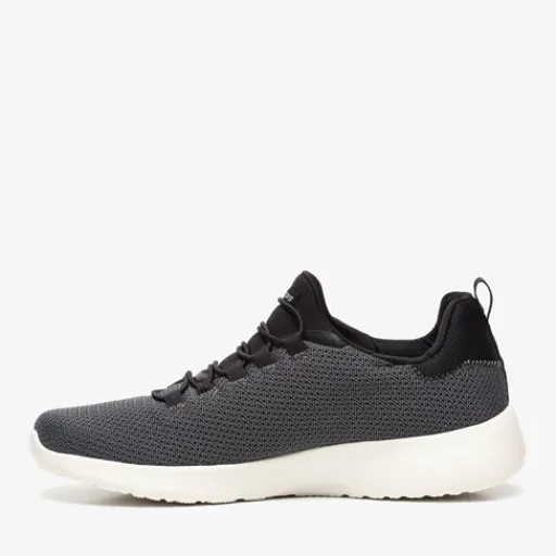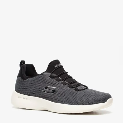 Zwarte Skechers Dynamight sneakers voor heren. Het buiten- en binnenwerk zijn gemaakt van textiel en de stevige zool met profiel van rubber. De sneakers hebben elastische veters en een aantreklusje op de hak voor een makkelijke instap. Het vaste voetbed is gemaakt van textiel en bevat Memory Foam voor optimaal comfort. Voorzien van ademend mesh op het bovenwerk en merkopdrukken op de tong en buitenzijde. De Skechers sneakers hebben een flexibele buitenzool die grip en demping biedt.