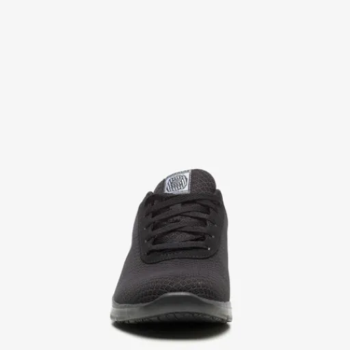 Zwarte Skechers Ghenter Bronaugh anti slip dames werkschoenen. Voorzien van een bovenwerk van mesh en een binnenkant van textiel, waardoor je voeten kunnen ademen. De stevige zool is slipbestendig. Op de zijkant van de schoenen staat een merkopdruk. Het comfortabele voetbed is gemaakt van textiel en bevat Air-Cooled memoryfoam.