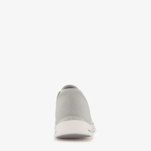 Stap handsfree in deze lichtgrijze Skechers Glide-Step – Excite sneakers voor dames. Het luchtige bovenwerk is gemaakt van mesh, het binnenwerk van textiel en de stevige zool met profiel is van rubber. Voorzien van elastische veters zodat je moeiteloos in en uit kan stappen en een uitneembare binnenzool. Deze bevat Memory Foam wat demping en comfort biedt. De sneakers hebben een subtiele grijs met witte design op het bovenwerk en een geometrische details in de zool.