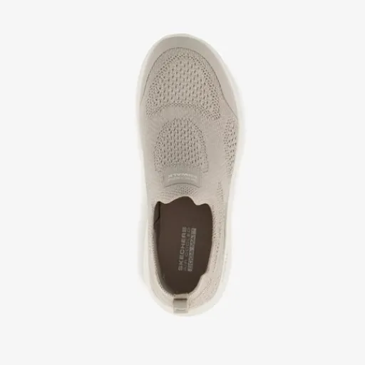 Beige Skechers GO WALK Flex – Talli dames instappers. Gemaakt van adememd mesh met stretch, een binnenwerk van textiel en een flexibele buitenzool met grip. De sneakers hebben een elastische instap met Stretch Fit® model voor sokachtig comfort. Voorzien van een ademende Skechers Air-Cooled Goga Matâ„¢ binnenzool met sterke terugwerkende demping en ultralichtgewicht gewatteerd Skechers Soft Strideâ„¢ schuim voor extra comfort.