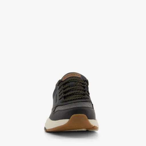 Zwarte Skechers Relaxed Fit Benago Treno heren sneakers. Gemaakt van leer, een binnenwerk van textiel en een rubberen zool. De sneakers hebben een vetersluiting en hiellusje. Het zachte voetbed van textiel bevat memory foam voor extra comfort en demping.