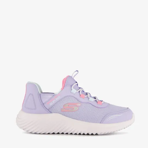 Stap moeiteloos in en uit deze lichtpaarse Skechers Slip-ins: Bounder sneakers voor meisjes. Het buitenwerk is gemaakt van textiel en imitatieleer, het binnenwerk is van textiel en de flexibele zool met profiel is van rubber. Voorzien van elastische veters en lusjes op de tong. De uitneembare binnenzool bevat Memory Foam wat voor demping en comfort zorgt. De sneakers hebben roze details en een witte, stevige buitenzool.