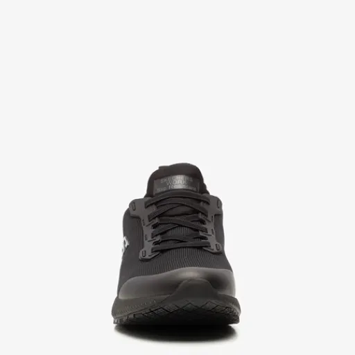 Zwarte Skechers Squad anti slip dames werkschoenen. Gemaakt van textiel, een binnenwerk van textiel en een stevige anti-slip profielzool. De werkschoenen hebben een vetersluiting en vast voetbed met gekoeld RelaxedFit® memoryfoam voor optimaal comfort. Makkelijke instap door het aantreklusje op de hak. Het bovenwerk is vervaardigd van mesh met een waterdicht membraan. De Skechers schoenen zijn ideaal voor werken in de zorg of horeca dankzij de flexibele anti-slip zool die uitglijden en vallen voorkomt, aangename pasvorm, versterking in de tenen en het hoge draagcomfort. Met deze werkschoenen voelt de laatste stap van de dag net zo goed als de eerste! Let op: deze schoenen vallen groot uit.