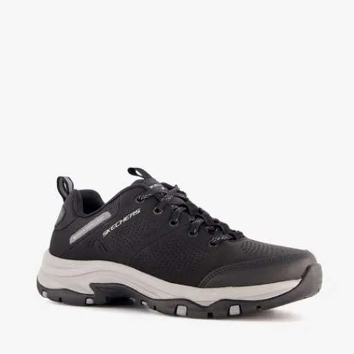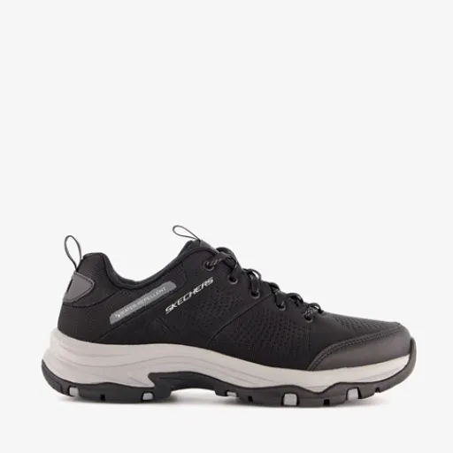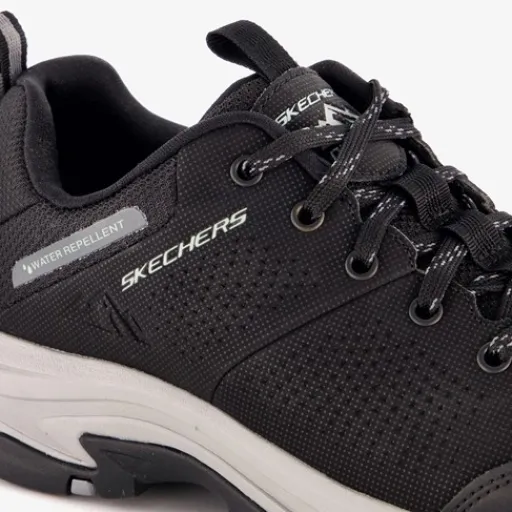 Zwarte Skechers Trail Destiny categorie A wandelschoenen voor dames. Het bovenwerk is waterafstotend en is gemaakt van imitatieleer, het binnenwerk is van textiel en de flexibele buitenzool met profiel van rubber. Voorzien van een vetersluiting en aantreklusjes bij de hak en op de tong voor een makkelijke instap. Het vaste voetbed bevat Air-Cooled Memory Foam wat demping en comfort biedt. Doordat de schoenen een Relaxed Fit®-ontwerp heb je meer ruimte bij de neus en de voorvoet. Categorie A wandelschoenen zijn laag van model, soepel en licht. Ze zijn geschikt om te wandelen op verhard of licht onverhard terrein. Wandelschoenen uit categorie A kun je gebruiken tijdens het lopen van een vierdaagse of tijdens een wandeling door het bos of op het strand.