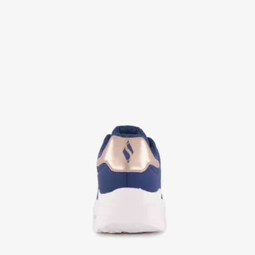 Blauwe Skechers Uno Lite sneakers voor dames. Het buitenwerk is van imitatieleer gemaakt, het binnenwerk van textiel en de stevige zool met profiel is van rubber. Voorzien van een vetersluiting en een vaste binnenzool met Memory Foam. Deze biedt demping en comfort. De sneakers hebben een goudkleurige inzet op de hak en een witte buitenzool.